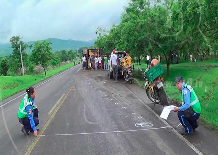 En el kilómetro 71 1/2 carreras Juigalpa a Managua en el Municipio de Teustepe en Boaco, un camión que iba cargado de ganado se vuelca en plena carretera, dejando cuantiosos daños materiales, según el chofer identificado como Mariano González, esto sucedió debido a que perdió la dirección del automotor.