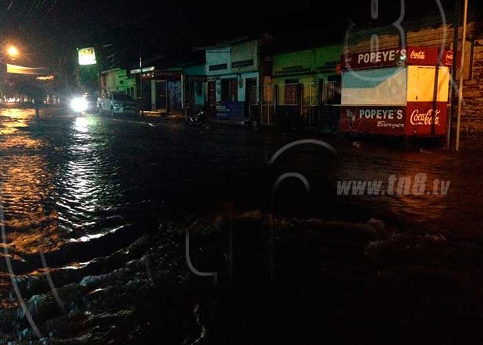 Las fuertes lluvias que se presentaron en horas de la noche de este lunes causaron inundaciones en diferentes sectores del municipio de Chinandega.