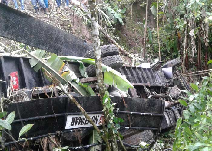 El pesado automotor al no ser controlado se fue a un abismo de más de 100 metros de profundidad, quedando dos personas prensadas que murieron instantáneamente.