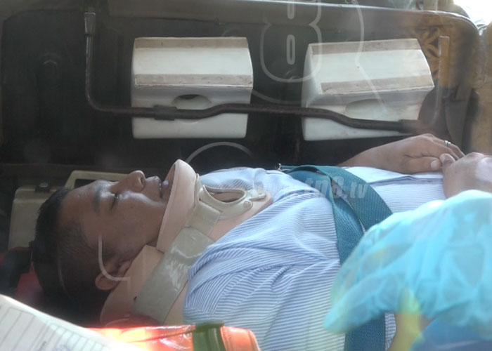 La víctima estuvo inconsciente por varios minutos en el lugar, y fue auxiliado por buenos samaritanos quienes de inmediato dieron parte a técnicos en emergencias de Cruz Roja Nicaragüense, quienes luego de haberlo asistido en el lugar abordo de la ambulancia, lo llevarían hasta el nuevo Hospital Militar como parte del riesgo laboral, donde médicos le realizarían un estudio para descartar cualquier fractura, debido a que se quejaba mucho de dolor en la espalda y en uno de sus brazos.