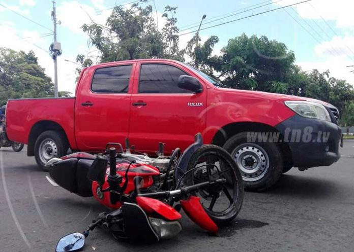 Un accidente de tránsito ocurrió la mañana de este miércoles, donde un motociclista resultó con serías lesiones al ser impactado por una camioneta en las inmediaciones de unos semáforos en Managua.