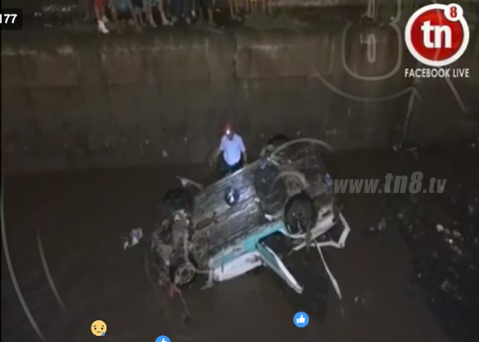 Tras el fuerte aguacero que cayó la tarde de este viernes 7 de julio en Managua, un vehículo se precipitó en el sector del Puente El Dorado, en donde de forma preliminar se conoce que venían tres personas a bordo, los cuales fueron arrastrados con todo y automotor por una corriente.