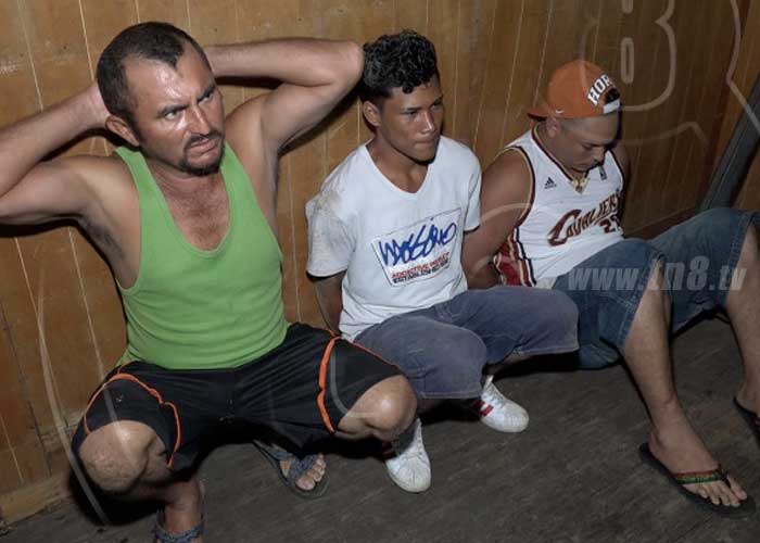 En una de las calles del barrio Acahualinca, Distrito II de Managua, fueron capturados tres sujetos a los que se les daba seguimiento por ser los supuestos responsables de la venta de drogas en el barrio.