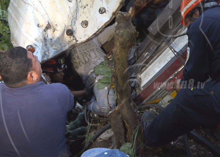 Los socorristas de la Asociación Civil del Cuerpo de Bomberos Voluntarios de Chinandega, ACCBVCH, y la Cruz Roja recibieron el llamado de auxilio a las 4:30 horas. Los rescatistas utilizaron herramientas hidráulicas y con la ayuda de la comunidad y otros ciudadanos que traficaban por el lugar, usaron mecates y motosierra para sacar al conductor quien intentaba mantenerse despierto y luchar por su vida.