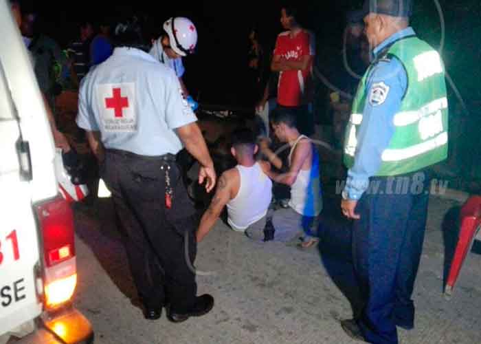 Karla y Ricardo presentaban trauma en el brazo derecho mas golpes y excoriaciones en diversas partes del cuerpo, fueron asistidos por paramédicos de Cruz Roja nicaragüense quienes lo remitieron a sala emergencia del hospital escuela Antonio Lenin Fonseca en condición estable gracias a que ambos afortunadamente portaban correctamente su casco de protección, lo que hizo la diferencia.