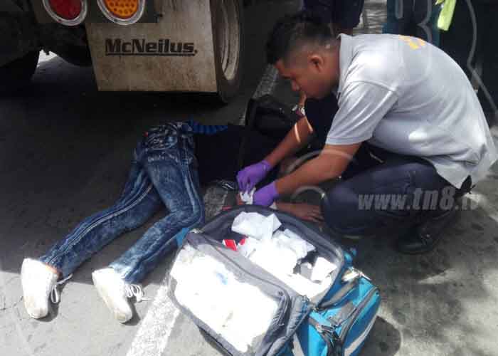 Con heridas de consideración en el brazo y golpes en el cuerpo resultó una joven de 24 años tras ser atropellada por un taxi cerca a los semáforos de Villa Fontana, Managua.