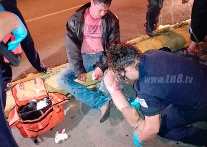 Con múltiples heridas en los dedos de la mano izquierda, fractura en la rodilla izquierda más quemaduras de segundo grado en el abdomen y la pierna izquierda resulto el matagalpino Edwin Obregón Rivera de 22 años, al estrellar la motocicleta que conducía contra un vehículo y posterior contra un bus de la ruta 104, en los semáforos del sombrero del Memorial Sandino, cuando pretendía aventajar entre medio de los dos.