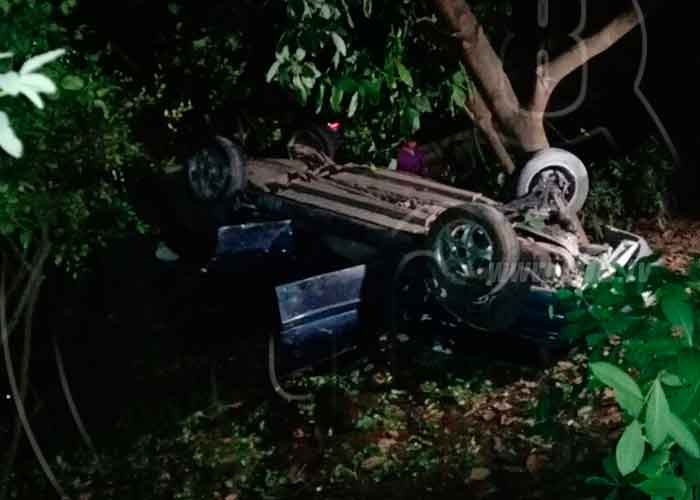 “Estaba adentro de la casa cuando escuché el arrastrón de llantas y después el fuerte impacto. Al salir al patio miré el carro volcado con las llantas arribas y los tres ocupantes prensados porque impactaron contra un árbol de aguacate a como pude los sacamos y después los bomberos se llevaron a dos al hospital, uno grave y el más joven quedó aquí, quien dijo que venían de Granada y bien tomados”, relató don Roberto Zapata, propietario del predio donde el carro quedó volcado.
