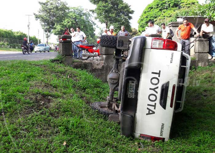 Con fracturas en uno de los dedos de la mano y fuertes golpes en varias partes de su cuerpo, resultó el conductor Marco Lovo, de 54 años, originario de Costa Rica, cuando se dio vuelta la camioneta donde viajaba con un acompañante estadounidense de nombre Sterling Garrigang, quien tenía golpes leves del accidente que se registró en el kilómetro 96.5 de la carretera que va hacia el municipio de Telica, en el departamento de León, al occidente de Nicaragua.