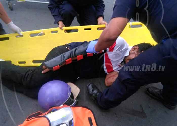 Con pronóstico reservado fue remitido al hospital Antonio Lenín Fonseca un motociclista identificado únicamente como Tony, quien al colisionar contra un vehículo taxi, resultó con un trauma craneal que lo dejó en condición grave.