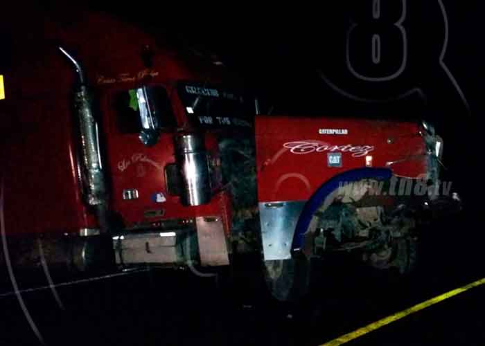 En el kilómetro 162 de la vía panamericana norte se registró un accidente de tránsito donde dos rastras con placas de Managua se vieron involucradas.