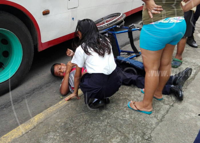 Momentos de pánico vivieron los pasajeros de uno de los autobuses que cubren la ruta 164, al presenciar un incidente que casi le cuesta la vida a un ciudadano de 38 años identificado como Juan Pinar, quien quedó debajo de la unidad de transporte, luego de que este, supuestamente, tratara de cruzar la calle en su silla de ruedas. Esto sucedió en el sector de donde fue ''El Tanque Rojo'', en el barrio Reparto Schick, en Managua.