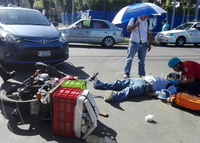 Don Oscar Javier Ocón salió a bordo de su motocicleta a recorrer distintas calles de Managua a vender lecheagria, tortillas y gallopinto, pero este miércoles contó con la mala fortuna de salir lesionado cuando un carro cometió la imprudencia de tirarse una señal de Alto, impactándolo y dejándole lesiones.