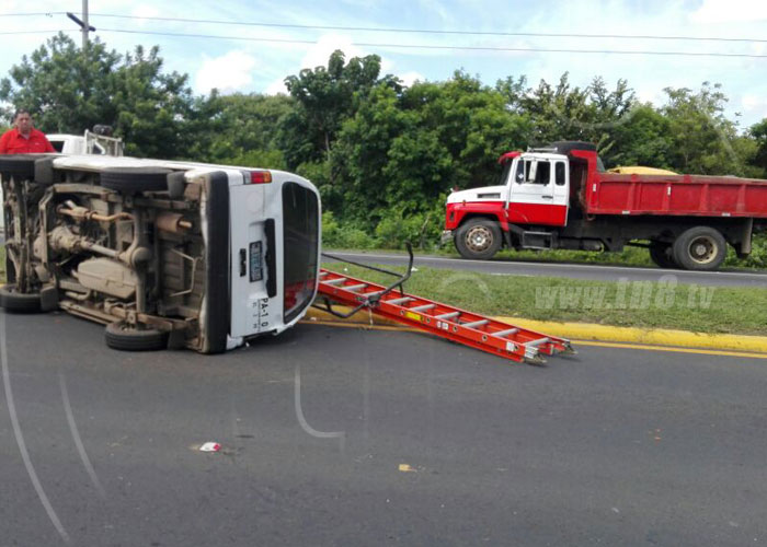 nicaragua, carretera nueva a leon, accidente de transito, microbus, vuelco,
