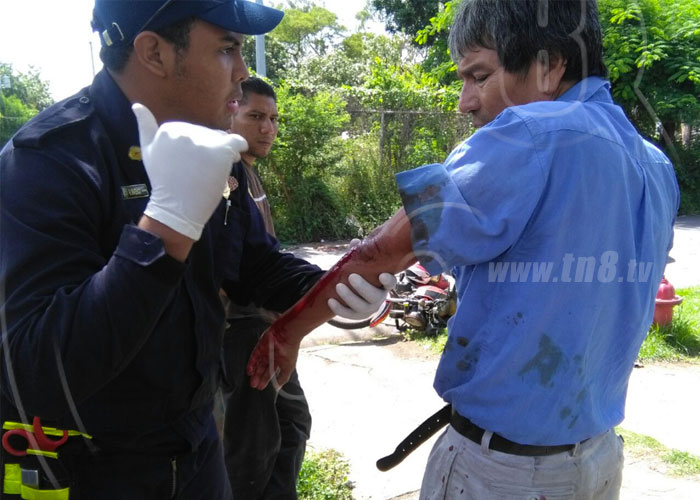 Paramédicos de la Dirección General de Bomberos brindaron los primeros auxilios al herido, quien enojado por lo ocurrido, se negó a ser remitido a un centros asistencial, pese a que los bomberos le orientaron que era necesario que la fisura que presentaba en su brazo izquierdo ameritaba unas cuantas puntadas y la necesidad de realizarse otros exámenes por los golpes que recibió en su costado.