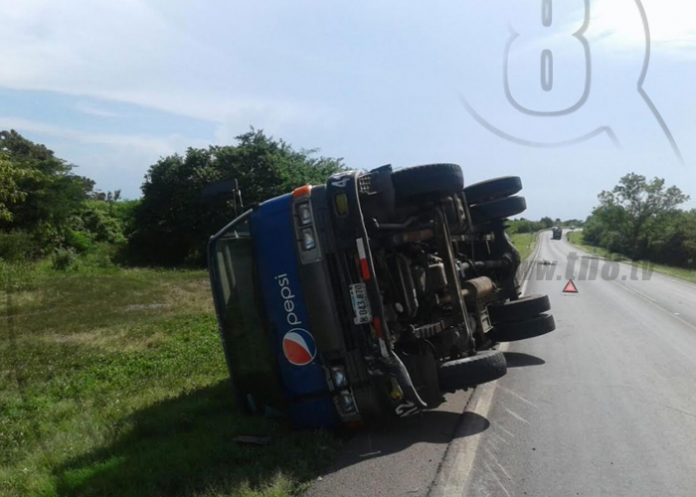 Supuestamente por esquivar a un vehículo, el conductor de un camión perdió el control del automotor y terminó volcado a un lado de la pista, en el kilómetro 43 de la Carretera Panamericana Norte, jurisdicción Managua.