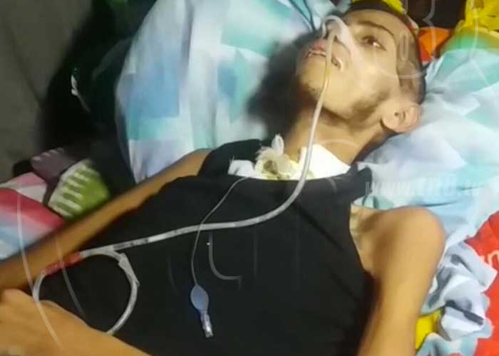 El joven quien laboraba en una Ferretería de Diriamba fue ingresado en estado delicado en el hospital regional Santiago de Jinotepe. Con la mitad de su cabeza hundida, pero por un milagro de Dios sobrevivió y fue trasladado hacia el hospital Lenin Fonseca en la capital, donde se mantuvo por dos meses y medio en cuidados intermedios y fue sometido a cinco operaciones en su cabeza, pensaron que no sobreviviría pero por gracias de Dios está con vida, dijo su tía Juana de Los Ángeles.