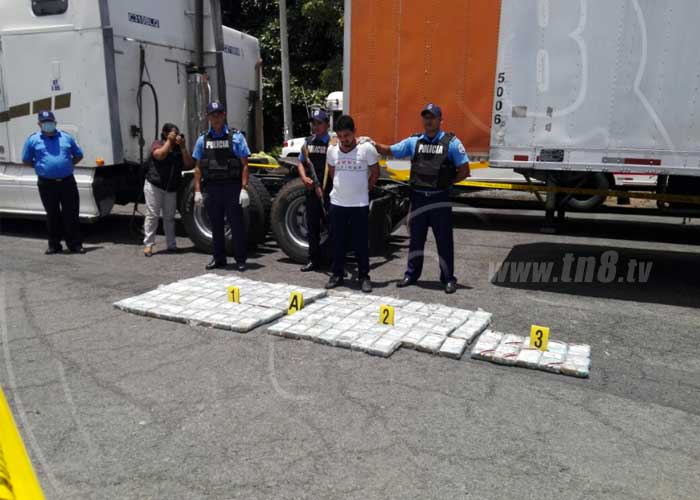 Los guatemaltecos permanecen detenidos en las celdas del chipote, junto a la droga incautadas y los cabezales con placa C310BLQ y C871BKM.