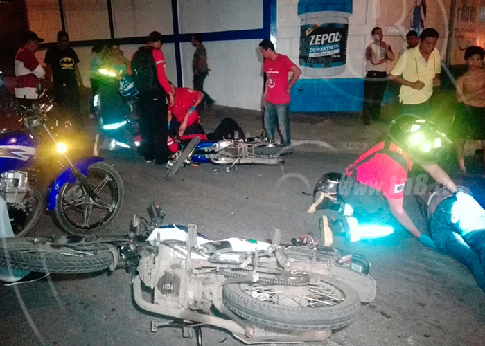 En el suelo y quejándose del dolor, se encontraban 3 personas que resultaron lesionadas, al sufrir un accidente de tránsito, en las cercanías al hospital Salud Integral. Entre los tres lesionados, se estaba una joven quien se encuentra en estado de embarazo, la cual tiene un periodo de seis meses y medio.