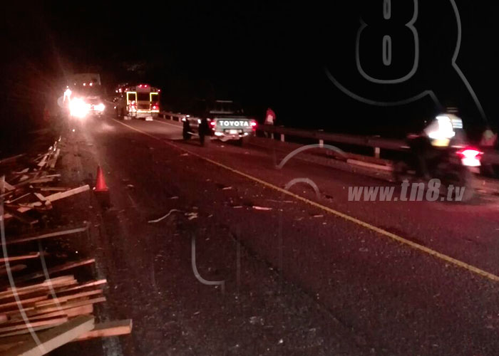 Una rastra cargando miles de pies cúbicos de madera aserrada habría provocado un accidente de tránsito en el kilómetro 128 y medio de la vía panamericana norte entre las comunidades Mechapa Arriba y Mechapa Abajo, al norte del casco urbano del municipio La Trinidad.