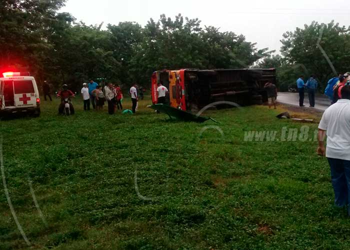 Al menos 47 personas logran sobrevivir al volcarse un bus en el sector del Lajero km 145 entre la carretera Juigalpa al Rama, donde viajaban niños, jóvenes y personas adultas, quienes consideran que están vivos de milagro.