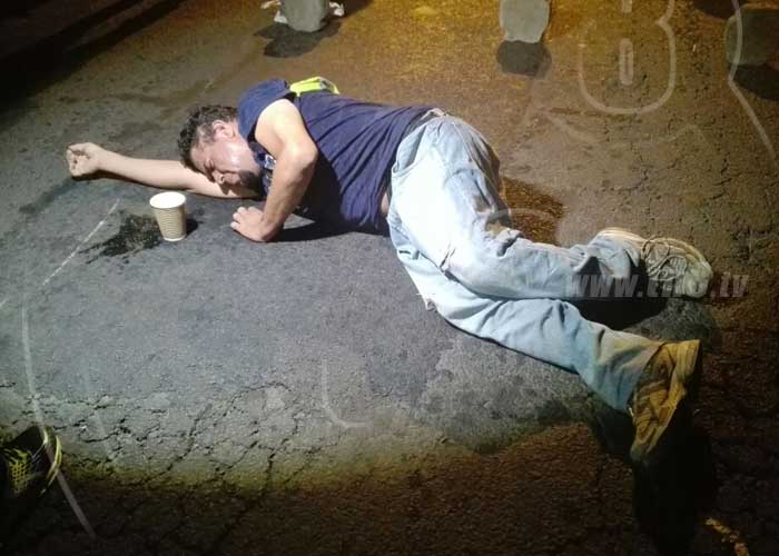 En una de las calles del residencial Los Robles, en Managua, se encontraba tirado sobre la pista José Carlos Lazo luego de ser atropellado por el joven Luis Montes, quien iba a bordo de su motocicleta con dirección Oeste a Este y por aventajar a un vehículo terminó provocando el accidente en el que el guarda se llevó la peor parte.