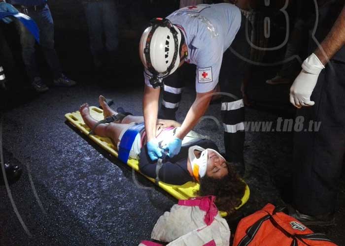Ante la emergencia fue necesaria la presencia de una ambulancia, presentándose una unidad de la Cruz Roja Nicaragüense a cargo de Yader Salazar, quién después de estabilizar a la lesionada procedió a trasladarla al hospital Antonio Lenin Fonseca con excoriaciones, golpes en el cuerpo, policontusiones y trauma lumbar.