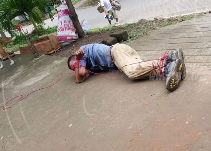 Carlos González fue capturado cuando intentaba robar champú, papel higiénico, jabón y otros productos de un establecimiento en Juigalpa, Chontales. González intentó salir del lugar sin pagar, por lo que el dueño del negocio le dio seguimiento hasta capturarlo y lo amarró de pies y manos, posteriormente lo entregó a la Policía Nacional para que este sea procesado por el delito de hurto.