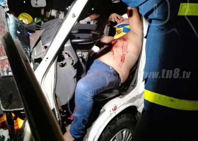 Un aparatoso accidente de tránsito se registró la noche del miércoles frente al club de natación Las Barracudas, en Managua, donde el conductor de un microbús perdió el control y terminó estrellándose contra un poste de tendido eléctrico. Como resultado el chofer quedó prensado entre la chatarra, a la que se redujo la parte delantera del vehículo.
