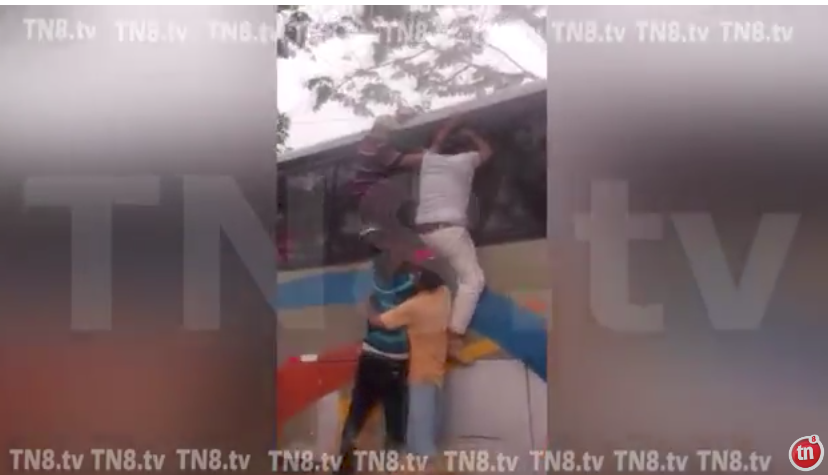 En un momento se puede ver también cómo el conductor del bus intenta hacer algo desde adentro y maniobrar con las llantas, pero el nivel del agua es tan alto que resulta una tarea prácticamente imposible.