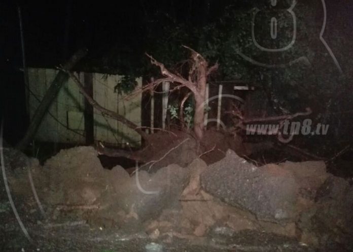 Otro enorme árbol de chilamate cayó sobre la calle dejando incomunicadas a las personas, por lo cual de una manera solidaria los mismos pobladores cortaron parte del árbol con una motosierra, dejando así libre el acceso para el transporte liviano ( motocicletas y vehículos).