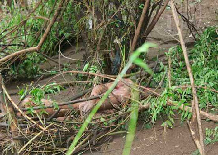 Se presume que debido a las fuertes lluvias, las corrientes del río arrastraron dicho cuerpo hasta dejarlo enredado entre raíces y malezas, además de ser encontrado completamente desnudo.