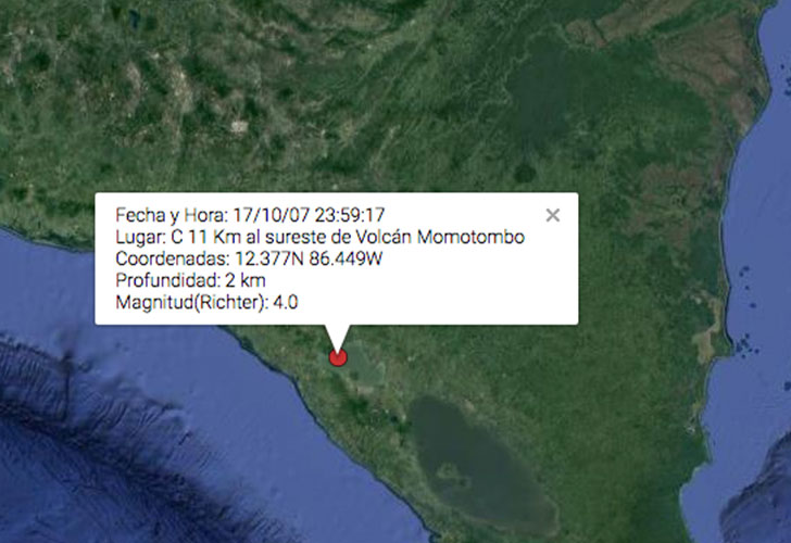 Según informes de INETER la intensidad del movimiento telúrico fue de 4.0 grados en la escala de Richter a una profundidad de 2 kilómetro con epicentro frente a las costas de Nagarote en el lago de Managua