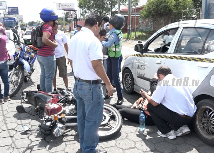 Hellen Ávila de 25 años, supervisora de una empresa privada, resultó herida al ser impactada por un vehículo taxi en el sector del Conchita Palacios, en Managua, ambos conductores iban en dirección de oeste a este.