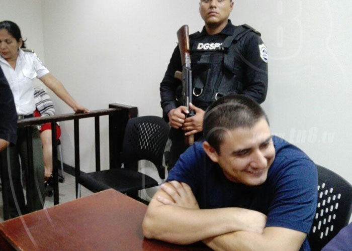 Kenneth Isai Duarte López de 37 años se mostró hoy con una sonrisa como si fuese poco lo que ahora tendrá que enfrentar con la justicia nicaragüense, al ser llevado a los Juzgados de Managua, exactamente a la sala 21 del Juzgado Noveno Distrito Penal de Audiencia a cargo de la doctora Indiana Gallardo, lugar donde se dio lectura de sentencia por el delito de lavado de dinero, bienes o activos en perjuicio de la sociedad de Nicaragua y el estado de Nicaragua.