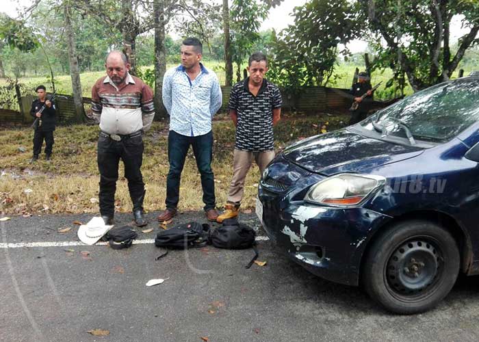 Los detenidos corresponden a los nombres de Juan Adolfo Castellón, Enrique Jose García y Jefry Calderón los que dijeron que habitaban en lugares diferentes uno dijo que era de Juigalpa, otro de San Carlos y el último de los Peñones en Nueva Guinea.