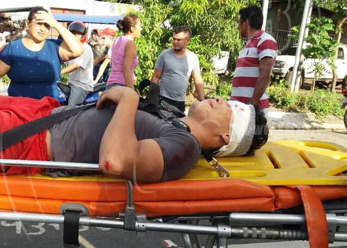 El accidentado presentaba golpes y excoriaciones en varias partes de su cuerpo más una herida en la ceja derecha, por lo que tuvo que ser trasladado por miembros de la Dirección General de Bomberos al hospital escuela Óscar Danilo Rosales Argüello. Agentes de tránsito llegaron al lugar para investigar las causas del accidente que dejó daños materiales.