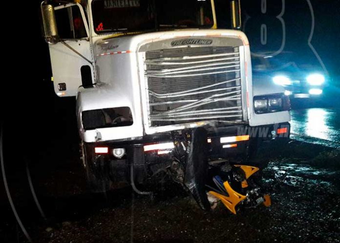 Tras el mortal impacto, el chofer del pesado camión no detuvo su marcha y arrastró por más de dos kilómetros la motocicleta incrustada bajo el bomper del cabezal donde lo dejó abandonado y se dio a la fuga.