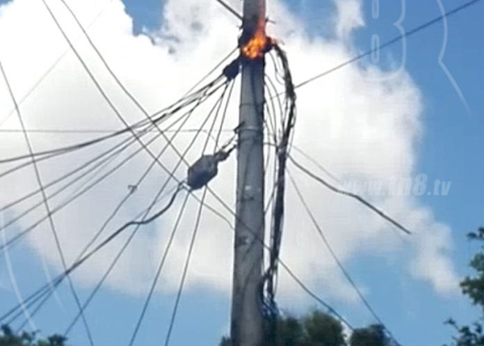 Sin energía eléctrica y nerviosos de que un incendio alcanzara sus hogares, se encontraban pobladores del barrio Américas I, en Managua, después que un poste de tendido eléctrico se incendiara.