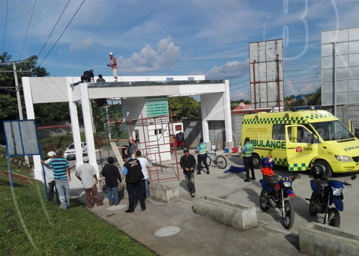 Utilizando cuerda y una canasta, miembros de la Dirección General de Bomberos (DGB) lograron bajarlo de la estructura y después de ser estabilizado fue trasladado en estado delicado al Hospital Roberto Calderón. "Presenta quemaduras de segundo y tercer grado en diversas partes del cuerpo al recibir una descarga, lo bajamos con una canasta y cuerdas de la estructura de cinco metros y ya está siendo trasladado en una ambulancia al hospital más cercano", manifestó el capitán Terencio Ruiz, de la DGB.