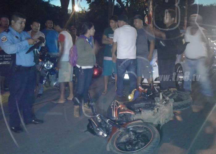En el sector del empalme de Tipitapa- Masaya, la noche de este miércoles, ocurrió un accidente de tránsito que involucró al conductor de un triciclo y una motociclista, dando como resultado dos personas lesionadas.