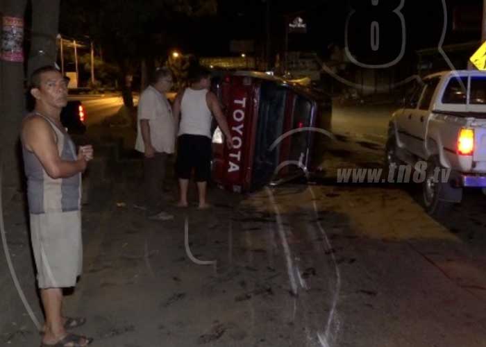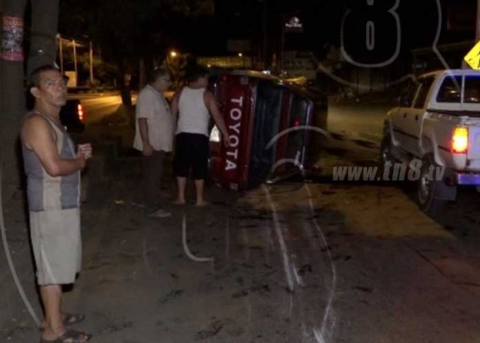 Frente al Banco Central, antes de llegar al 7 Sur, un vehículo quedó completamente destrozado luego de que su conductor, identificado como Ariel Zamora, después de haber pasado varias horas consumiendo bebidas alcohólicas tomó la mala decisión conducir su Toyota 4×4 y se volcara en ese sector de Managua.