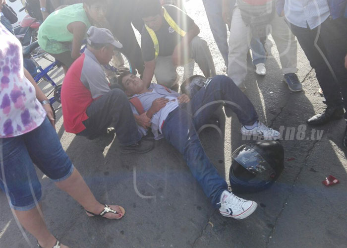 Paramédicos de la Dirección General de Bomberos le brindaron los primeros auxilios para después trasladarlo al hospital más cercano. "Presenta golpes en diversas partes del cuerpo, aparentemente va estable pero lo vamos a trasladar al Hospital Alemán Nicaragüense para que sea mejor valorado por paramédicos de turno", dijo Nelson Pérez, técnico en emergencias médicas de la DGB.