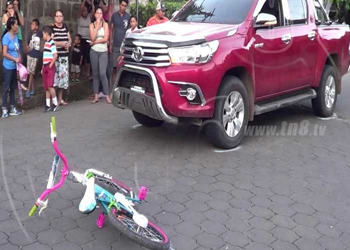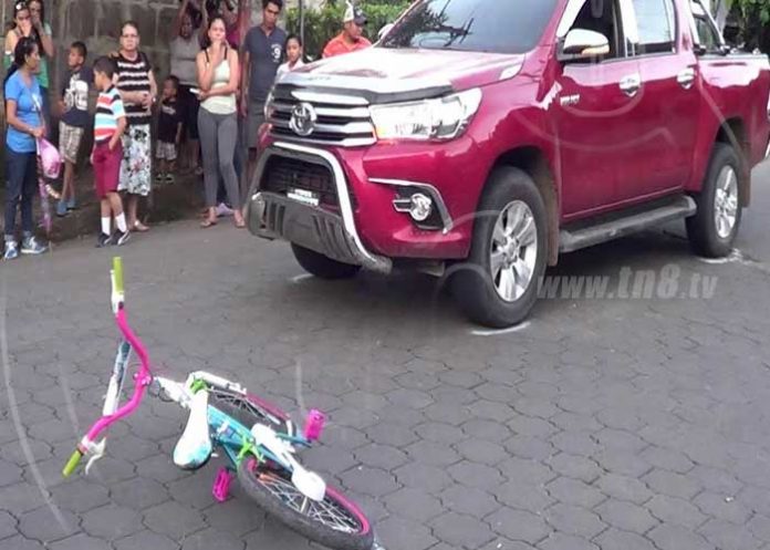 Atropellada por la camioneta placa BO 6829 resultó una niña de 8 años en el barrio Santa Isabel, del municipio de Boaco, cuando andaba jugando en su bicicleta en una calle.
