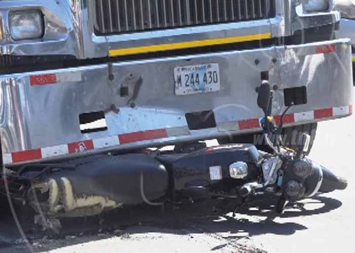 Una fuerte colisión se dio en la entrada del matadero de Nandaime, cuando una mujer se detuvo para esperar su vía y de repente apareció un furgón atropellándola y arrastrándola por unos diez metros con todo y motocicleta.