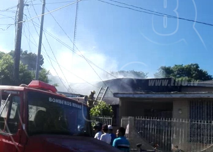Totalmente reducida a cenizas quedó la segunda planta de una vivienda ubicada de la Rotonda de Rivas cuadra y media al oeste, en el barrio Santa Ana, propiedad de Don Armando Grillo Leal, conocido como "El Gordo Grillo"