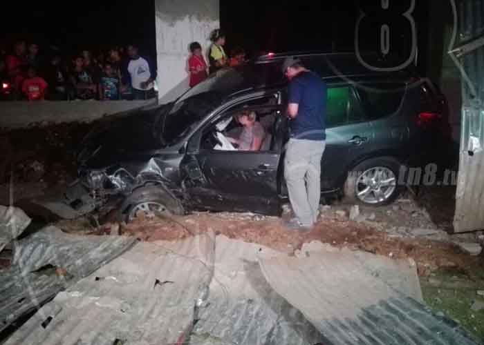 El segundo vehículo involucrado fue otra camioneta, una Hilux, conducida por la joven Arelys Urtecho, que de tremendo susto no podía decir ni una palabra acerca de lo sucedido. Por eso uno de los acompañantes, de nombre Juan Francisco Flores, relató cómo se dio el accidente. "Nosotros venimos saliendo del estadio, de ver el partido de Nicaragua, tenemos toda la preferencia y giramos hacia el sur cuando de repente la señora salió de ahí en frente (señalando hacia un predio baldío) sin hacer cómo frenar o esquivarnos, nos choca en la parte del frente, gracias a Dios y ella siguió, no se detuvo, tanto así que avanzó muchos metros, no sé ni cuántos, se subió al bulevar y se metió a la universidad, destruyó parte del muro que están haciendo, hasta se volcó y la volvieron a poner en su lugar. De milagro no le pasó nada, pero es bien irresponsable esa señora que hasta ebria parece que anda", comentaba Juan Flores.