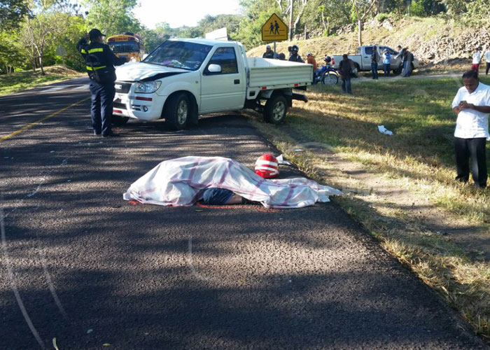 La camioneta con placas M 244-957 conducida por Jorge Isaac Zeledón Benavides de 30 años, originario de Estelí, es la que supuestamente impactó por la parte trasera a la motocicleta color negro con placas M 120-772.