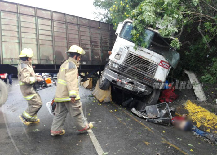 En horas de la mañana de este lunes se dio un terrible y trágico accidente de tránsito en el sector de la Cuesta El Plomo, en Managua, en donde un camión que transportaba maní perdió el control al no funcionar los frenos y se estrelló a orillas de esta carretera, dejando dos personas fallecidas, siendo una de ellas la que quedó prensada en medio de la chatarra.