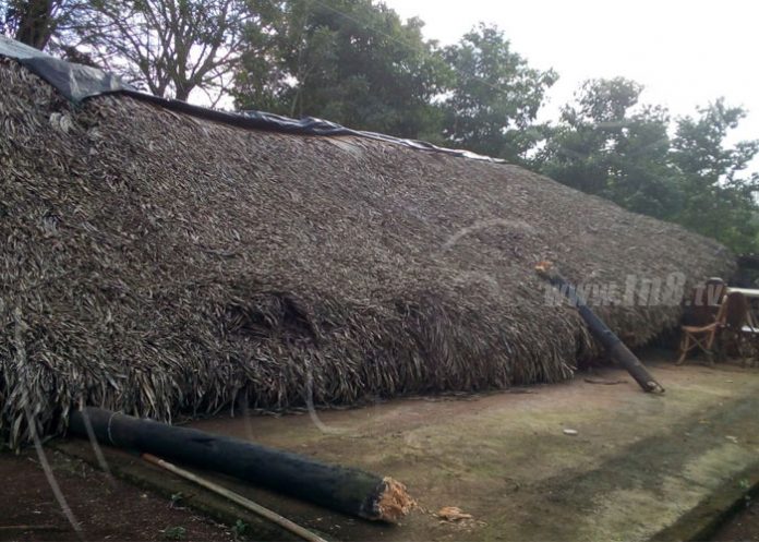 Una choza ubicada sobre la vía a Río Plata se derrumbó después de un fuerte viento que corría de norte a sur, hecho registrado este lunes en Nueva Guinea.